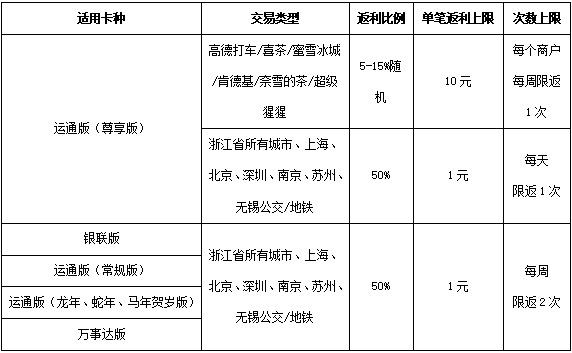 2026年1月1日至2026年6月30日,持卡人通過(guò)指定入口成功報(bào)名,并綁定已激活且卡片狀態(tài)正常的菁英白金卡(運(yùn)通版)常規(guī)版或賀歲版,活動(dòng)期間滿足活動(dòng)返現(xiàn)規(guī)則的境外消費(fèi),可享5%返現(xiàn),活動(dòng)期間單卡單月最高返100元人民幣。