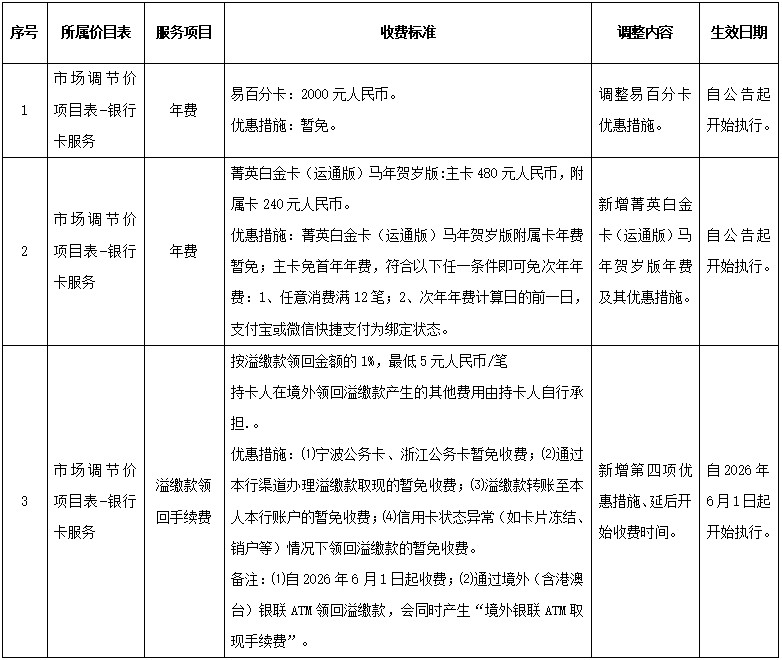 為了向您提供更加優(yōu)質(zhì)便捷的服務(wù),根據(jù)國(guó)家有關(guān)規(guī)定,我行擬調(diào)整部分收費(fèi)項(xiàng)目并進(jìn)行規(guī)范公示。現(xiàn)將本次調(diào)整情況公告如下: